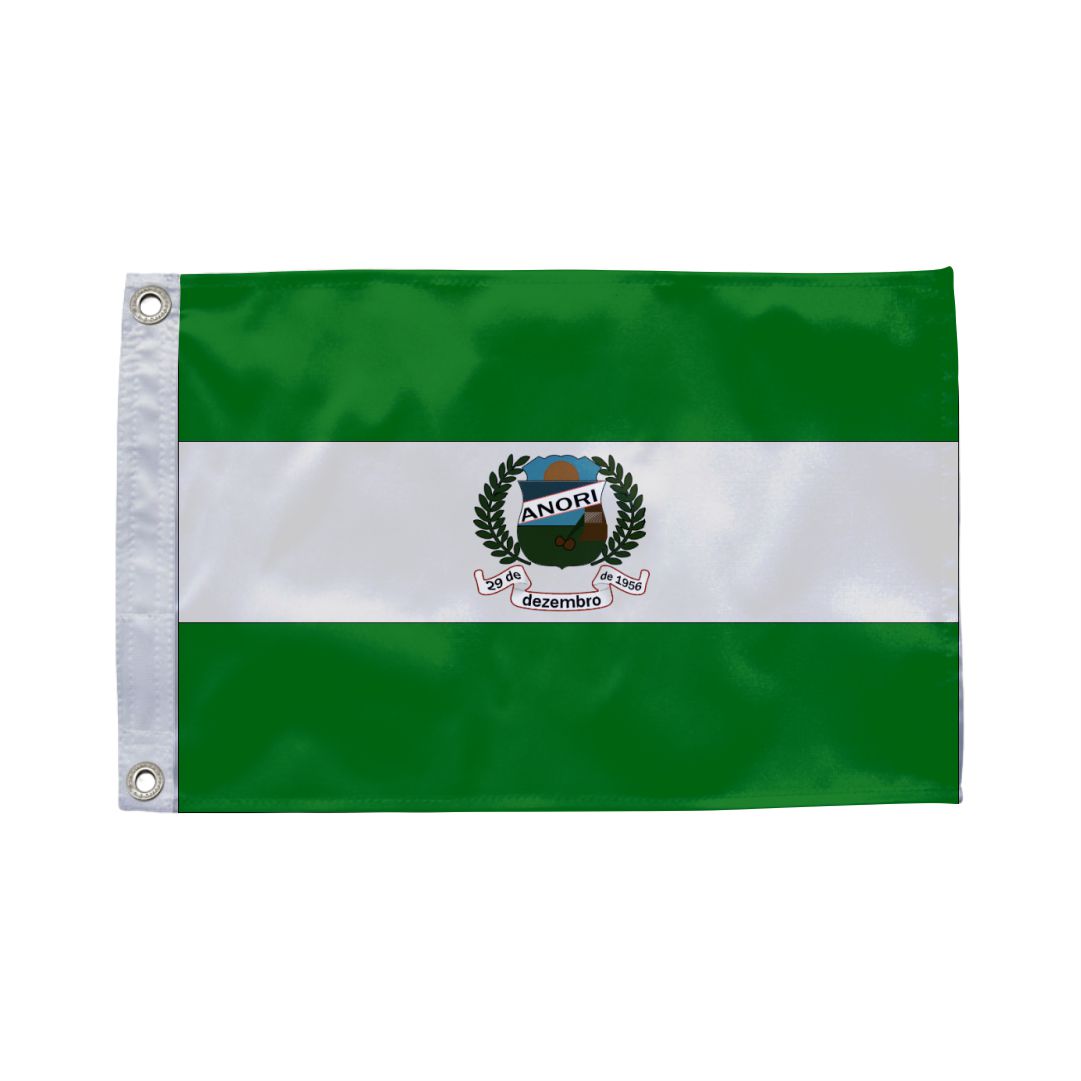 A bandeira de Anori é composta por faixas horizontais nas cores verde, amarelo e branco, dispostas de forma a representar a exuberância da floresta e a riqueza local. O pavilhão simboliza o orgulho da comunidade e a conexão profunda do povo anoriense com o seu território.