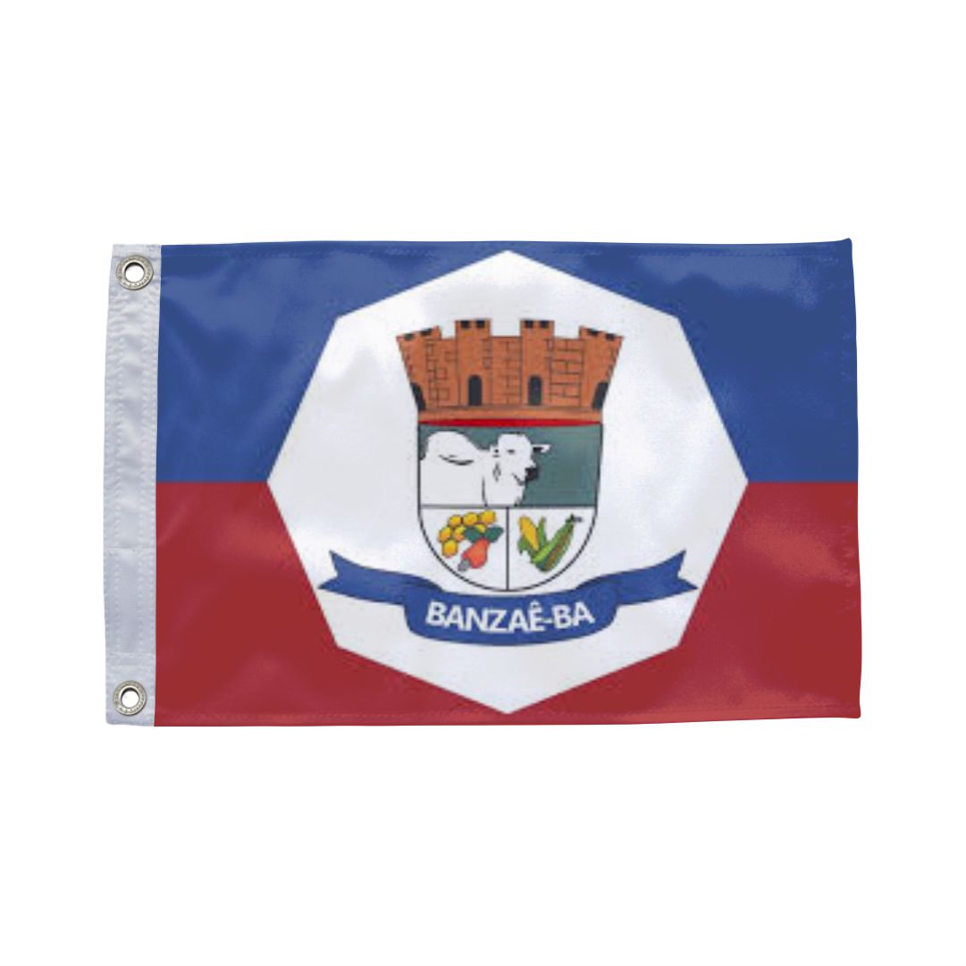 Bandeira de Banzaê (BA) em tecido 100% poliéster dupla face com impressão digital de alta resolução. Ideal para prefeituras, câmaras municipais, escolas e eventos cívicos.