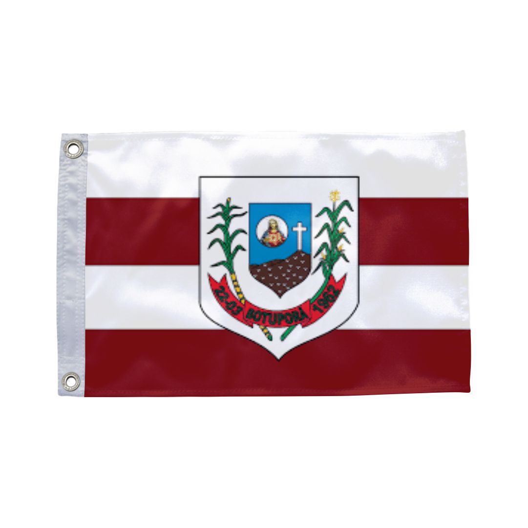 A bandeira de Botuporã é composta por faixas horizontais que destacam as cores oficiais do brasão municipal. O design simboliza a harmonia entre o desenvolvimento local e a valorização das raízes históricas de seu povo.