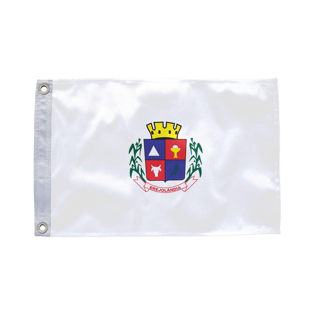 A bandeira de Brejolândia apresenta um design que utiliza faixas horizontais em tons que representam a natureza e a paz. O brasão central simboliza as riquezas locais e a força do trabalho de seu povo, consolidando o orgulho municipal.