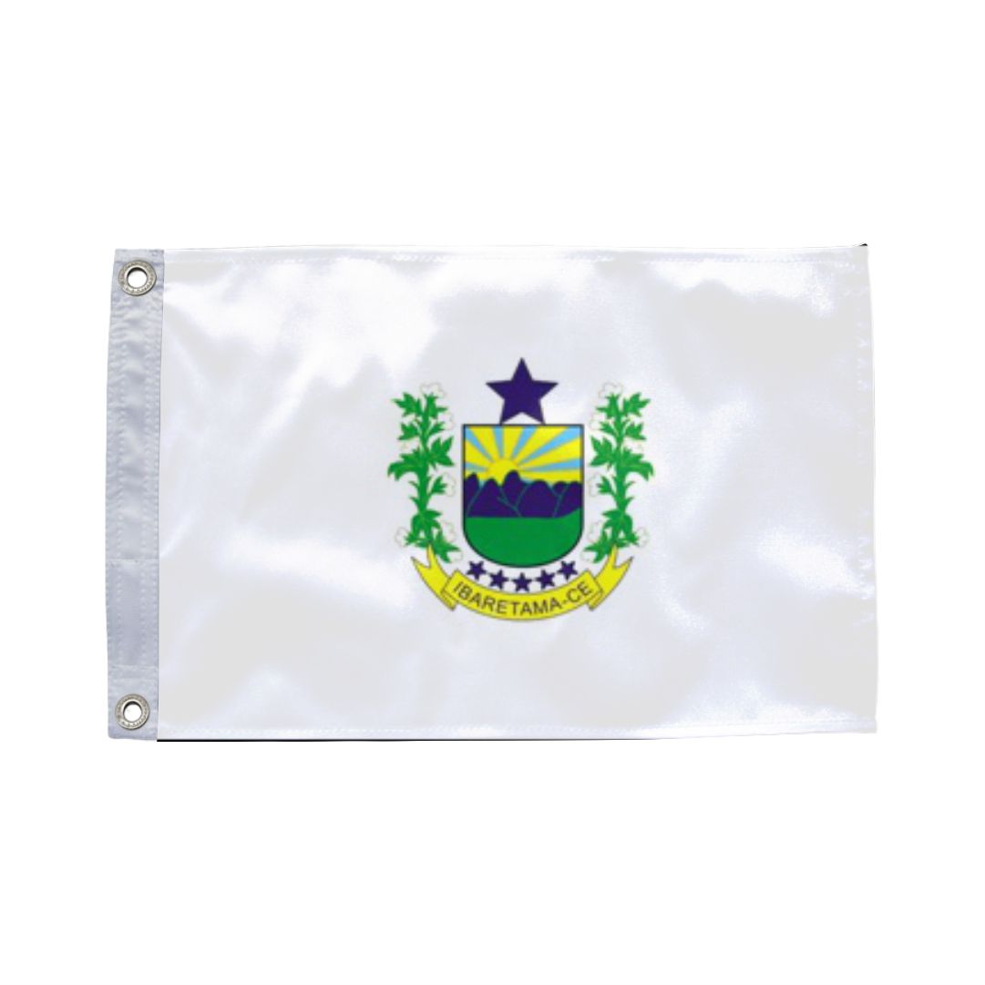 A bandeira oficial de Ibaretama é composta por faixas horizontais que carregam as cores simbólicas do município. O brasão central destaca elementos da fauna, flora e da identidade rural, representando o orgulho e a história da sua gente.