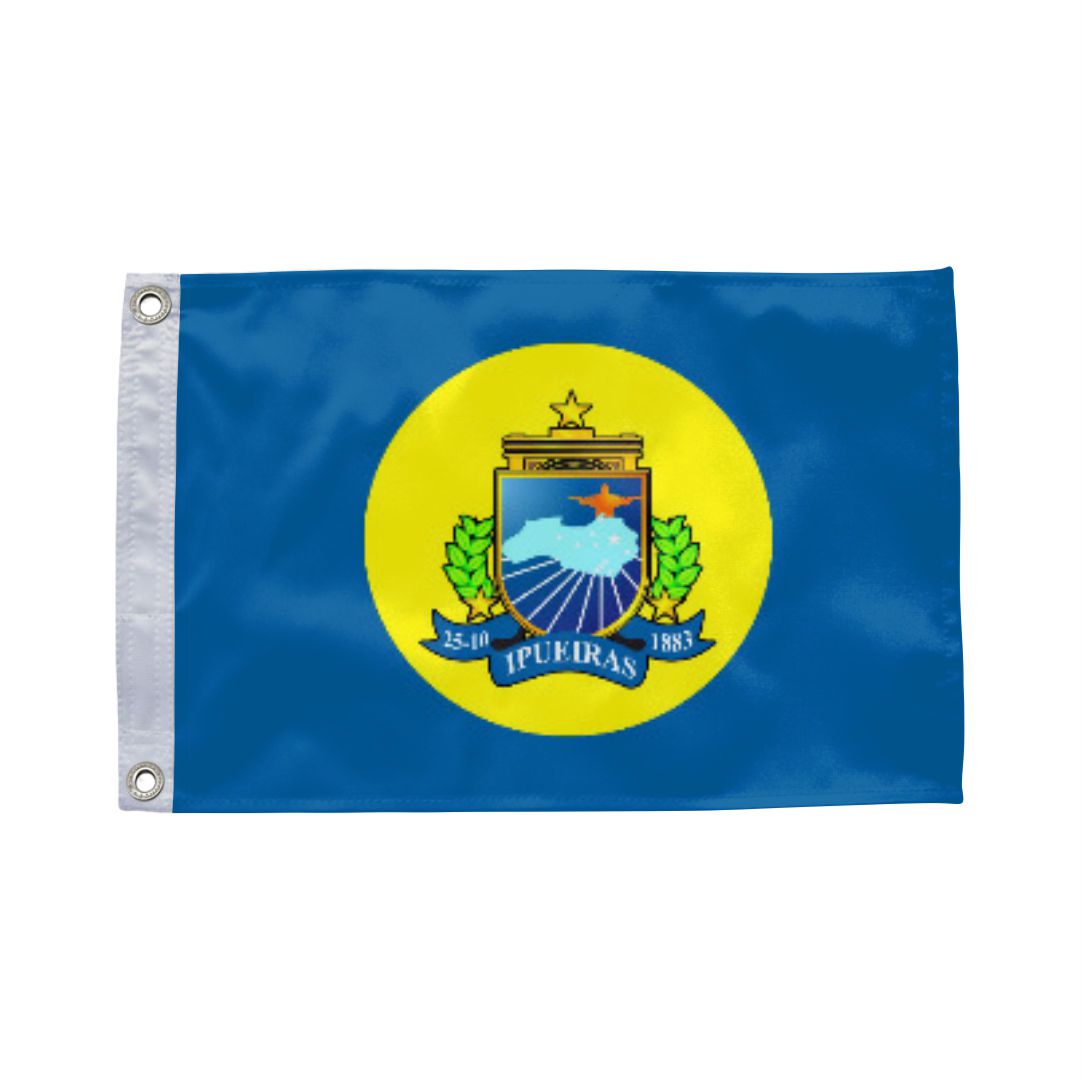 A bandeira de Ipu é composta por faixas horizontais que refletem a identidade local, apresentando em seu centro o brasão municipal. O desenho simboliza a força de sua gente e as riquezas naturais que definem a geografia da região serrana cearense.