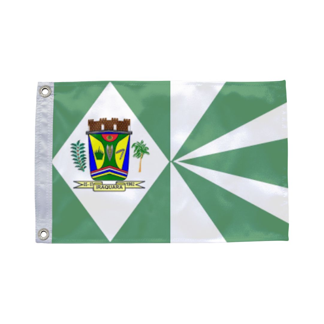 Bandeira de Iraquara (BA) em tecido 100% poliéster dupla face com impressão digital de alta resolução. Ideal para prefeituras, câmaras municipais, escolas e eventos cívicos.