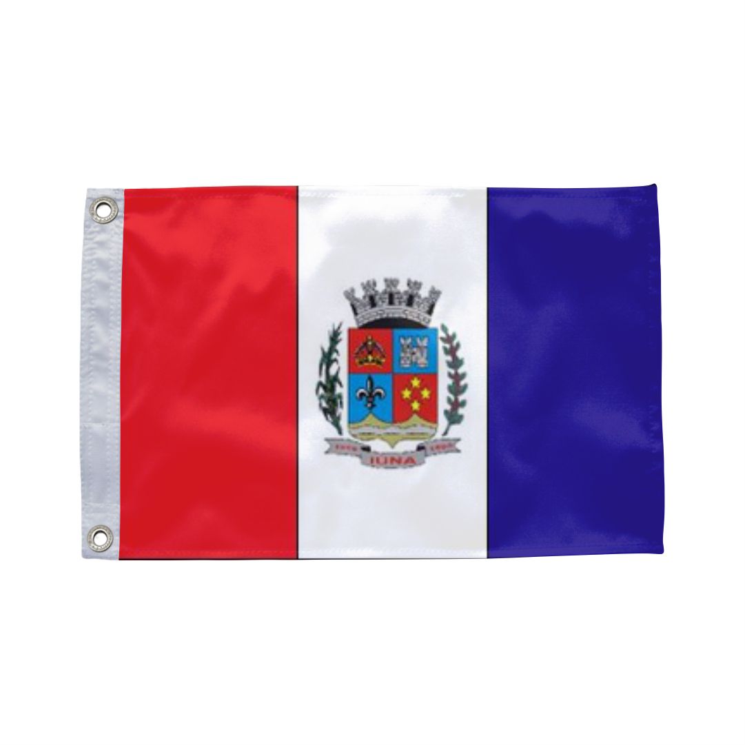 Bandeira de Iúna (ES) em tecido 100% poliéster dupla face com impressão digital de alta resolução. Ideal para prefeituras, câmaras municipais, escolas e eventos cívicos.