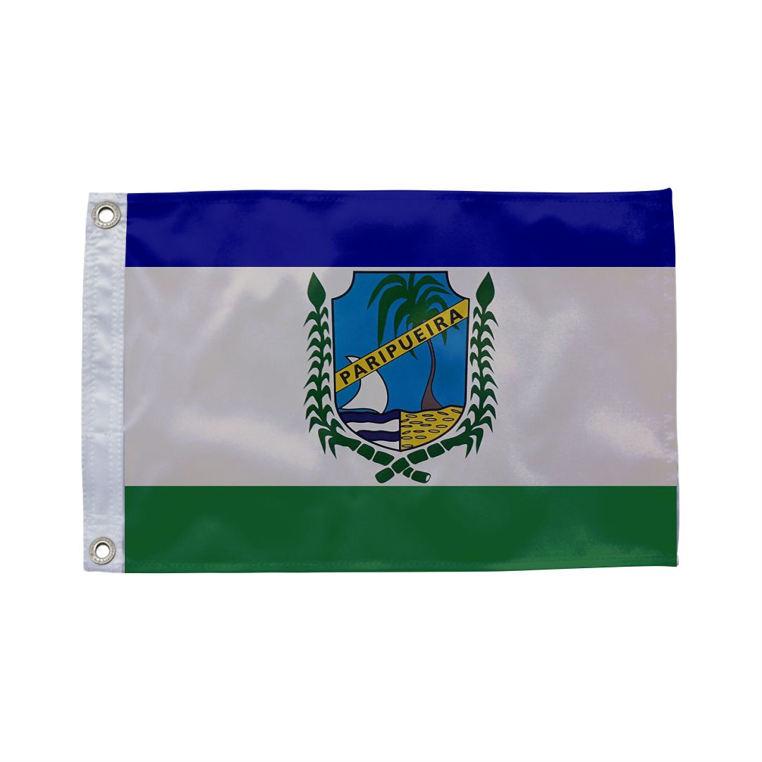 Bandeira de Paripueira (AL) em tecido 100% poliéster dupla face com impressão digital de alta resolução. Ideal para prefeituras, câmaras municipais, escolas e eventos cívicos.
