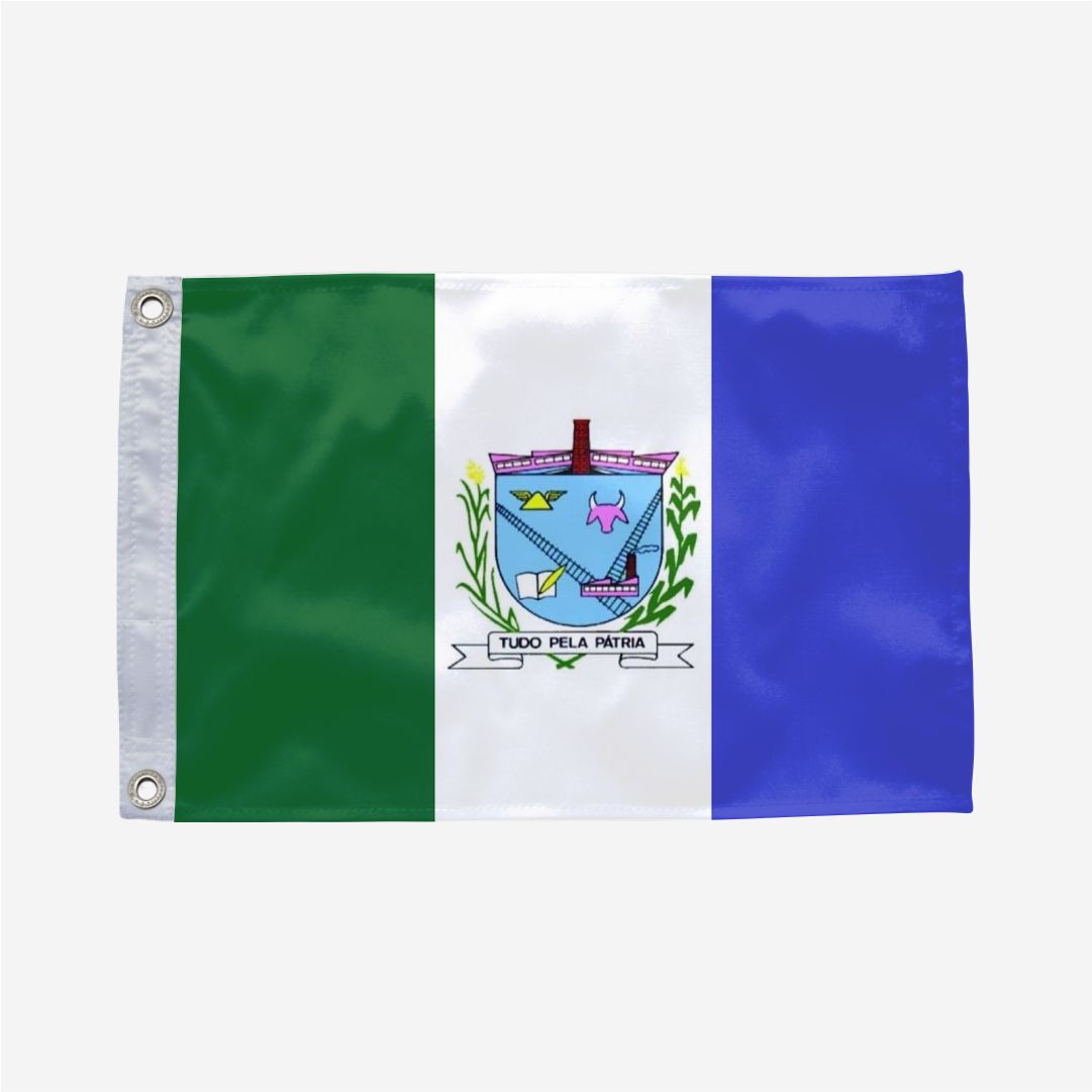 Bandeira de Pires do Rio (GO) em tecido 100% poliéster dupla face com impressão digital de alta resolução. Ideal para prefeituras, câmaras municipais, escolas e eventos cívicos.
