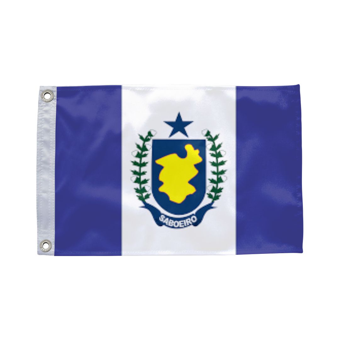 A bandeira oficial de Saboeiro é composta por faixas horizontais que representam as riquezas e a identidade do povo local. O pavilhão simboliza o orgulho municipal e o compromisso da comunidade com o desenvolvimento e a preservação de suas raízes culturais.
