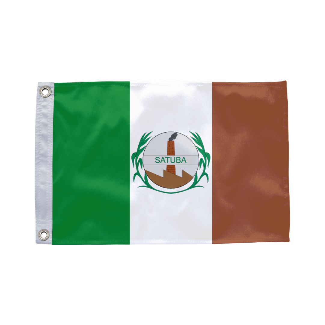 A bandeira de Satuba é composta por faixas horizontais que carregam as cores oficiais do município, centralizando o brasão de armas local. O estandarte simboliza a identidade administrativa e o orgulho cívico dos satubenses em eventos oficiais.