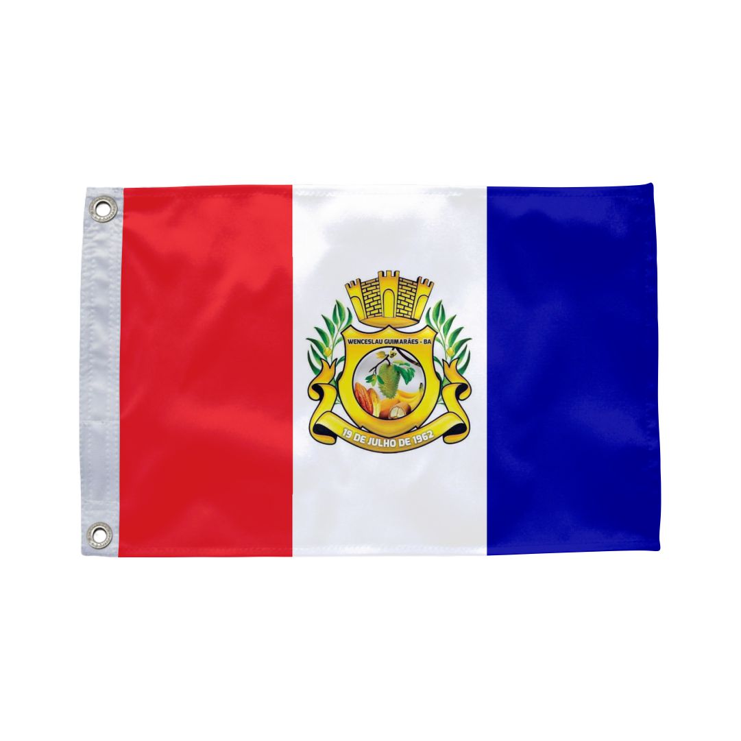 Bandeira de Wenceslau Guimarães (BA) em tecido 100% poliéster dupla face com impressão digital de alta resolução. Ideal para prefeituras, câmaras municipais, escolas e eventos cívicos.